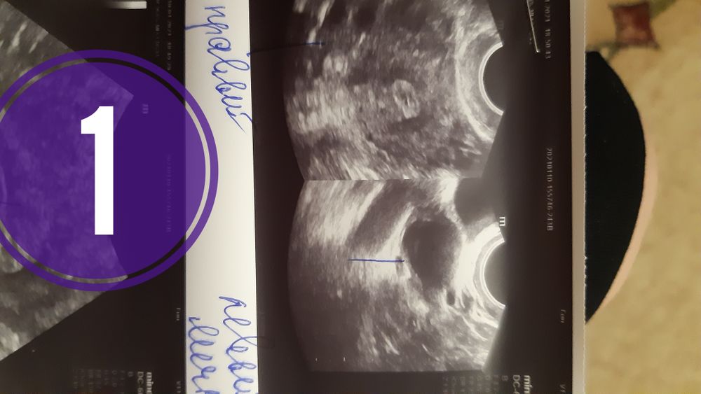 Под цифрой 1 узи 9янв вечером, где пишут-желтое тело 20мм. Тесты при этом только начанают ярчать, но пика еще не было. Потом в 20.30 тест //