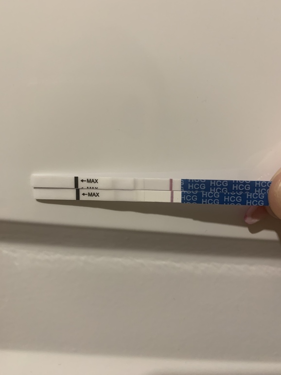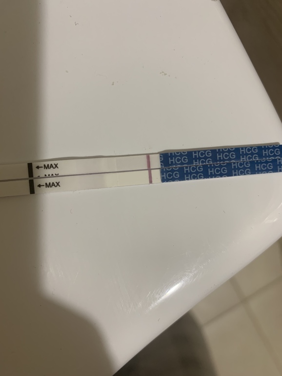 На фото не видно, в живую может и есть. Когда была беременная сыном, то у меня вообще были первые полноценные месячные, в последний день месячных стало тошнить,на след день сделала тест и // полоски, пошла к врачу - срок 6-8 Нед.