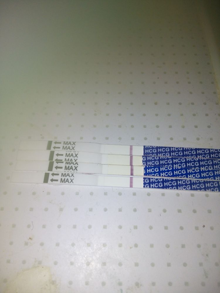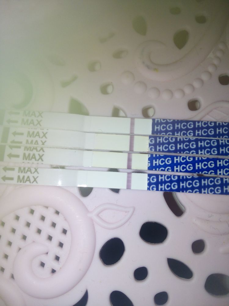 На 2 фотографии вижу отчётливо полосочку на тесте второй снизу) пусть будет у вас беременность 💖💐Держу кулачки 😊🤗