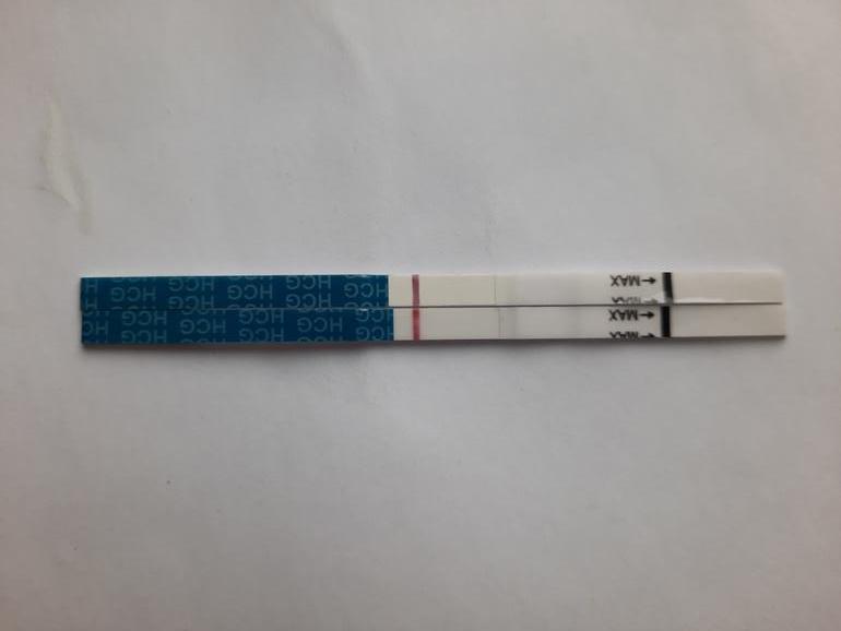 Когда есть беременность то полоска розовая без серого оттенки чаще всего она проявлется даже первее контрольной