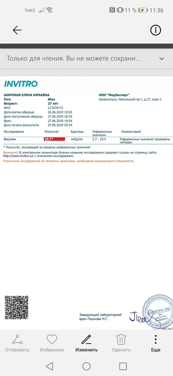 Спасибо большое за ответы. Ужин был в 10 вечера а сдала в 8 утра. Консультацию эндокринолог а не избежать. Но в ноябре лежала по бесплодию в больнице сдавала там и глюкозу и у эндокринологп была, сказала нет отклонений. Хотя поставили избыток веса. При росте 167 вешу 70