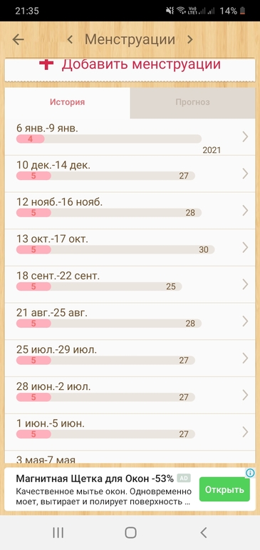 1дмц-06.01, цикл обычно 27/28 дней, но в посление месяцы сбился 25-30. ПА были 22 и 23.01. О по тестам отслеживала, тк БТ не получалось (график на работе ненармирован, 5-дневка+ 5-6 суточных дежурств на выходных, подъемы в разное время и тд).