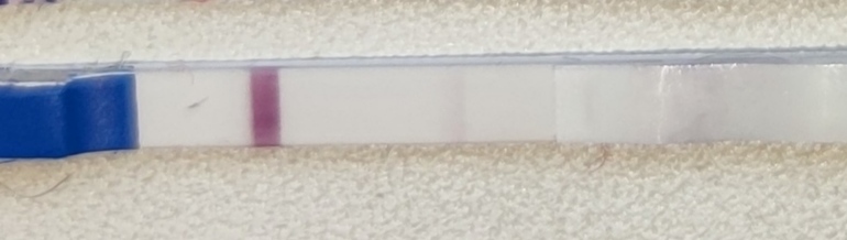 Я вижу реагент, по бокам контур полоски темнее, а внутри пустота