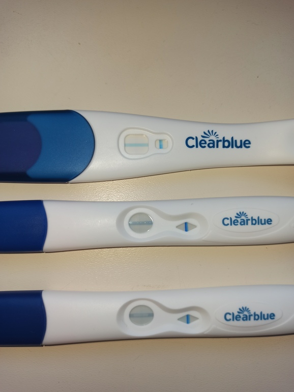 По календарю 10ДПО получается,я в последние г 2 месяца решила отдохнуть и не отслеживала О,а тут живот тянуть начал решила проверить на квадратном клиа еле заметная полоска,ну и на круглых появились прям сразу при замачивании,в прошлую ЗБ у меня слабые полоски на 4дз только проявились,по этому и смутило