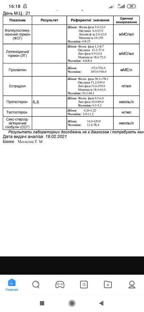 Меня в октябре врач отправила сдавать на 22 ДЦ прогестерон. А мой цикл разный каждый месяц. Овуляцию я в тот цикл не отслеживала и поэтому понятия не имела какой день был после овуляции. После сдачи анализа через 3 дня пришли М. Цикл оказался коротким. Естественно, прог пришёл низкий 16 нмоль/л. Повторно я пересдавала прог на 6- 7 ДПО. Овуляцию отследила тестами. И он оказался 39 нмоль/л.