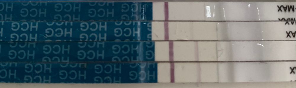 У меня помню жирная полоска стала появляться когда хгч в крови за 500перевалил . А до этого такие полоски как у вас были .