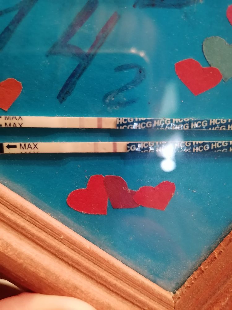 Беременность- 1 триместр ( только до 10 недель)Нашла запыленные тесты от второй беременности, два единственных после недели задержки.