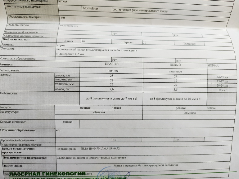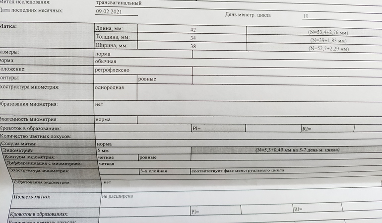 8 дц - в ПЯ под вопросом ДФ 10 мм, эндометрий 4,9