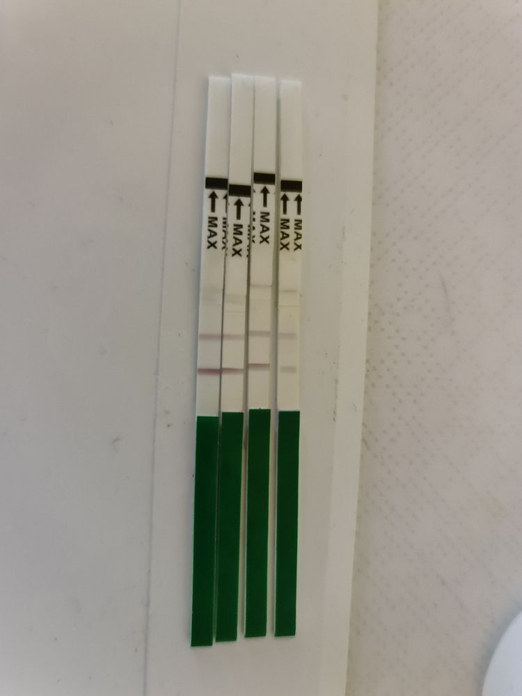 Овуляция( тесты на овуляцию)Добрый день, посмотрите пожалуйста фото , делала тесты через день , БТ сегодня 36.5 вчера была 36.7. Самый крайний тест слева это 16.03