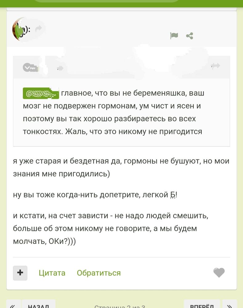InFiLight, согласна! Уже не первый раз замечаю, что только негатив пишут и советуют. Это ж надо так аудиторию подобрать? Все одинаковые! Они мне доказывали, что акушерский срок Б считается от О😆 Я уже думала, что со мной что-то не так. А потом выяснилось что пишут там бездетные бабули-модераторы, которые якобы лучше всех экспертов в этом разбираются. А когда я начала спорить и сказала, что нерожавшая не может впринципе в этом разбираться лучше рожавшей, даже будучи врачом, они меня заблокировали 😂