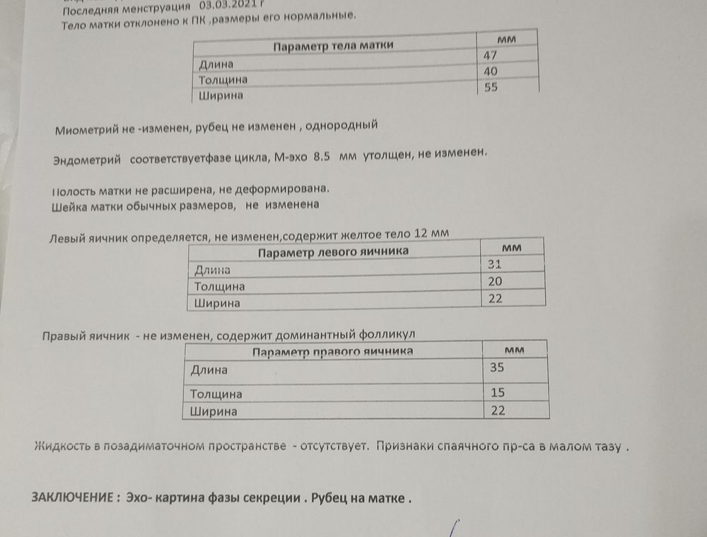 Написали в заключении фазу секреции. Это 2-ая фаза. Овуляция была.