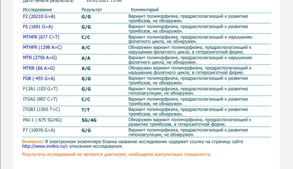 Страшных мутаций у вас нет. У вас не усваивается обычная фолиевая кислота,пейте метилфолат в дозировке 800. Гомоцистеин сдавали когда то? И есть мутации пай в гетерозиготе,она тоже не считается тромбофилией. У меня она тоже есть,как и ещё несколько. Наблюдаюсь у гематолога и ток вот к 25й недели назначили колоть клексан и то на основании д-Димера и антитромбина. Вы эмбрион на генетику сдавали?