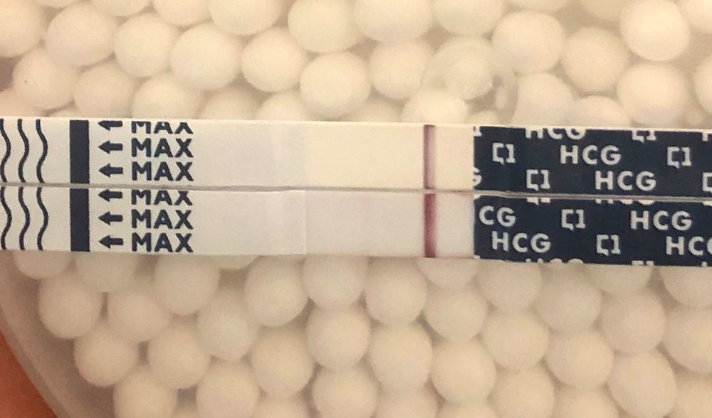 Ждем дня Х (Признаки беременности / Тесты)Девочки, у меня сейчас так тряслись руки, я просто не могу поверить! Утром сделала тест, он полностью пустой, прилагаю фотографии где два теста верхний пустой! Целый день тянет живот крутит как на месячные я была уверена что начнётся прямо сегодня. Достала бутылку вина к ужину, но перед тем как пить решила на всякий случай ещё раз сделать тест! А там //!!!!!!