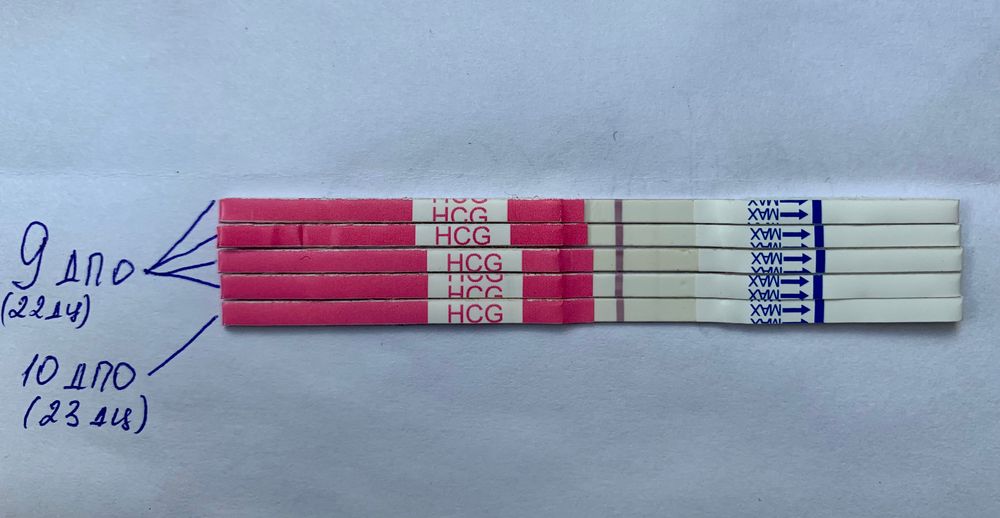 Dari, спасибо за ответ! Может и тугодумы, но вечером 9 дпо полоска была значительно виднее. Это направило на мысль о реагентах...