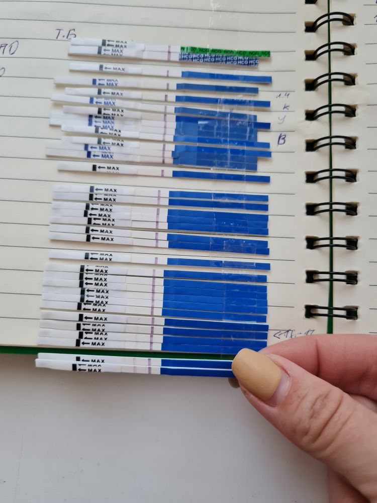 Маришка, ярчают они очень медленно, и после высыхания бледнеют, нижние два это уже 24 24 дпо просто ради интереса делала, полоста так и не сровнялась плюнула на это дело, в крови хгч был уже за 150