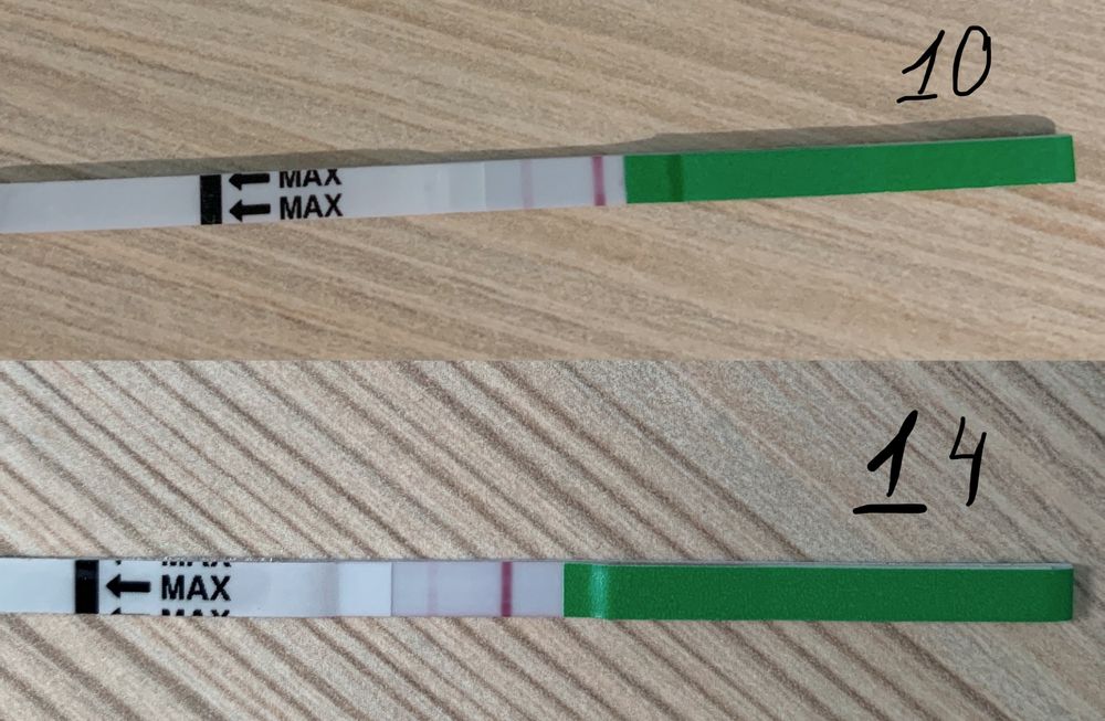 Да в один день может случиться утром всплеск, вечером уже побледнела полоска. Так тесты не делают. Но по вашему циклу 28 дней - всплеск должен быть вчера, а сегодня сама овуляция.