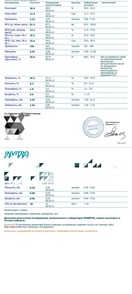 Ирина, в формула важны в первую очередь абс значени, а не проценты. Они в норме, да и в процентах отклонения минимальны, не переживайте. В целом ничего такого в анализе нет