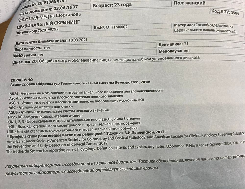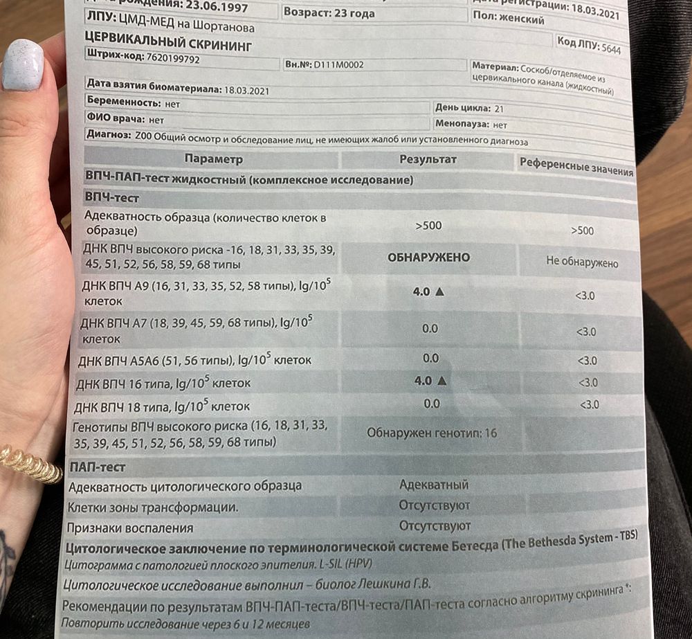 Алина , кроме того, есть виды ВПЧ, которые могут стать причиной рака шейки матки,как упомянула девушка, а есть более безобидные. У меня были и те и те, поэтому и были радикальные меры.