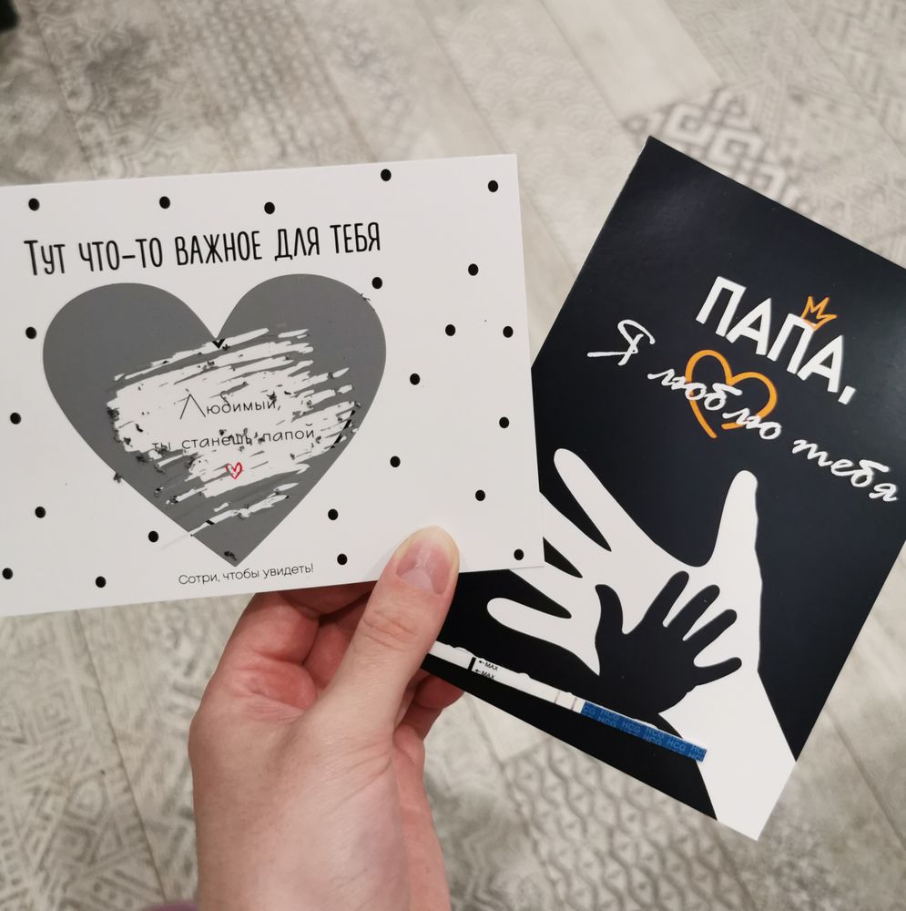 Положила в коробочку с наполнителем два конвертика. В первом открытка, которую нужно стереть, а во втором открытка с тестом и результатом узи. Надо было видеть моё лицо и состояние внутри когда он стирал и начал видеть эту надпись🙈❤️. Господи, спасибо за возможность видеть и ощущать эти эмоции🙏