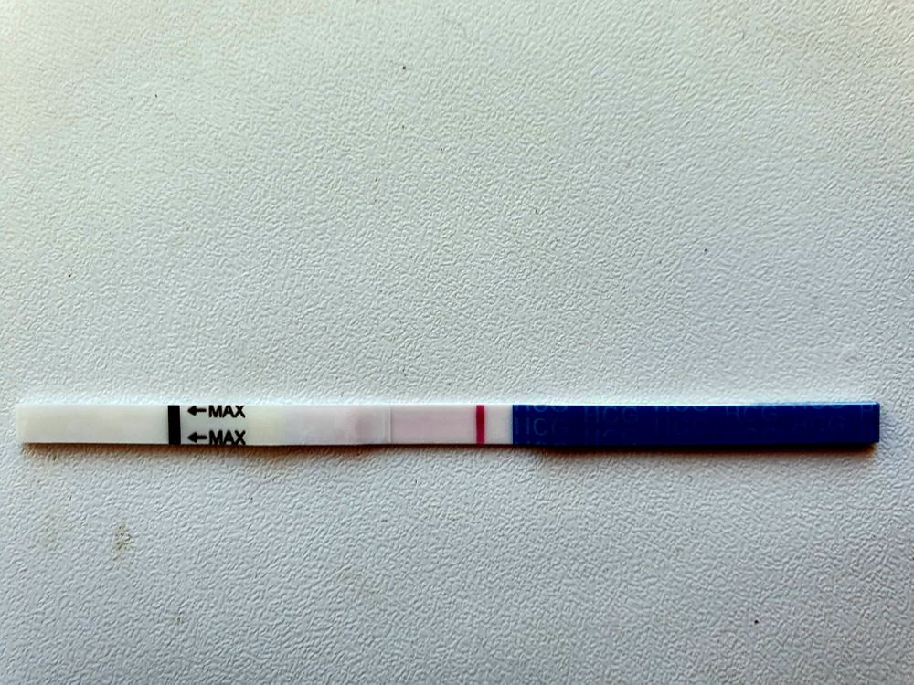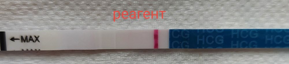 Пока эви мокрый, на нем всегда полоска. Надо оценивать, когда розовый реагент полностью разойдётся, минут через 5