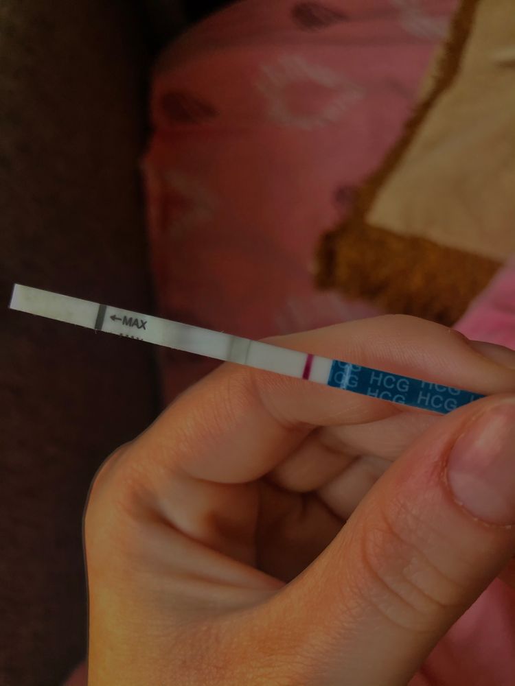 Цикл колеблется 28-35 дней. Сегодня 35 дц. Сделала тест, полоска не похожа на беременную (эвитест). На фото с обработкой ещё видно, а в реальности вообще выколи глаз, практически не вижу ее. Реагент?