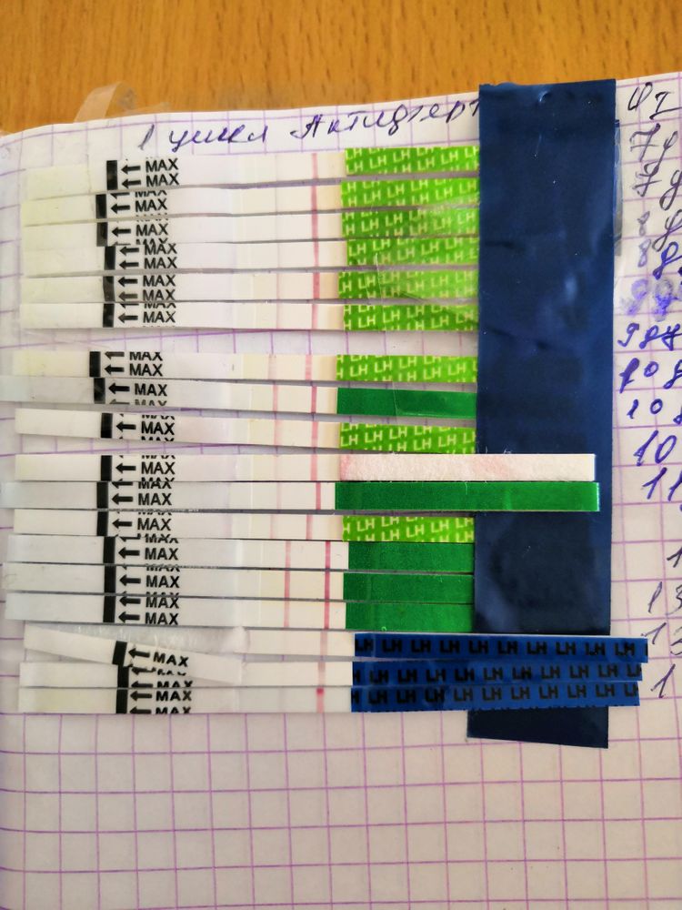 Овуляция( тесты на овуляцию)Тесты были бледные и вообще не понятно. Фрау и Я родился. А вот овуплан показал утром неплохую полоску, но не положительную (самый нижний).