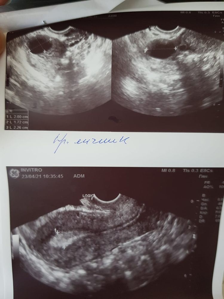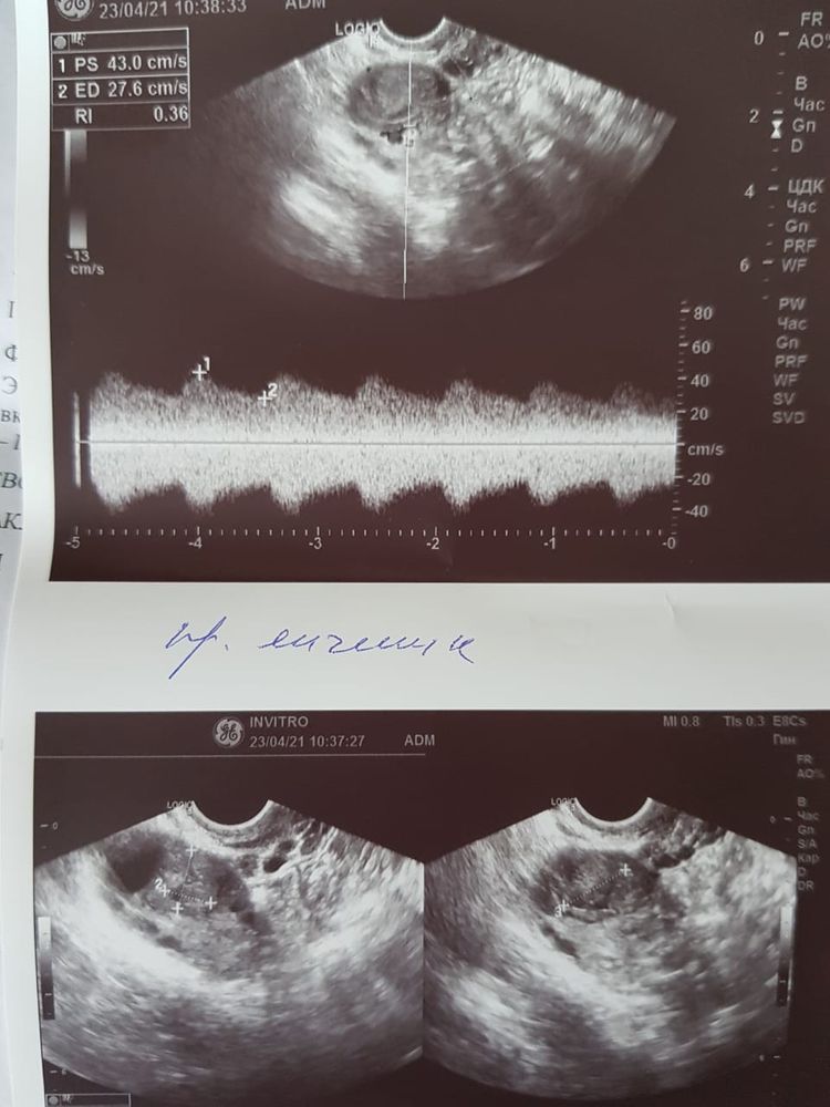 ФолликулометрияВ правом яичнике намерили ДФ 20мм (20x17x23) и ЖТ 14x11x17 с кровотоком.