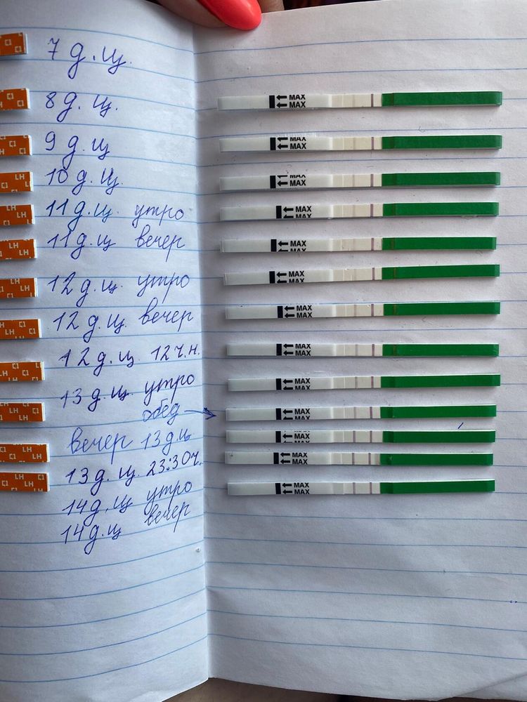 Ирина, но вот в последний цикл, было так : бледные пару дней,потом пару пустых, и потом по нарастающей . Последние 2 теста были одинаковые по яркости, а на следующий уже бледный и как раз овуля произошла😊