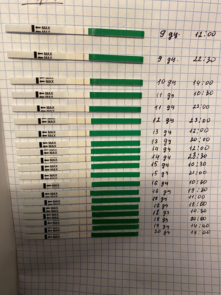 посмотрите мои овуплан. Два верхних 9 дц утро/ вечер, затем 10дц утро/ день/ вечер. Вечер положительный. О была ночью, и нижний сегодня утро.