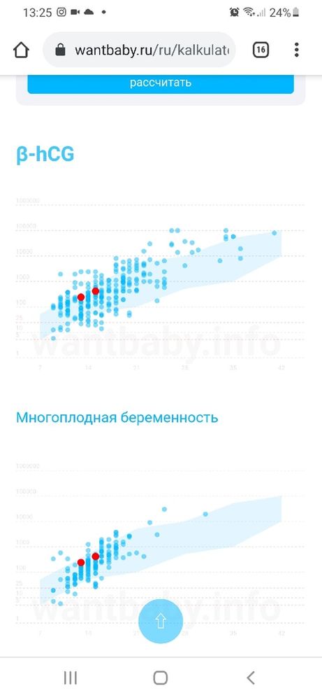 Понимаю, что и это может являться нормой (калькулятор ХГЧ тоже пишет, что норма, и мои красные точки очень даже красиво расположены в самом верху линии нормы на графике, см.фото).