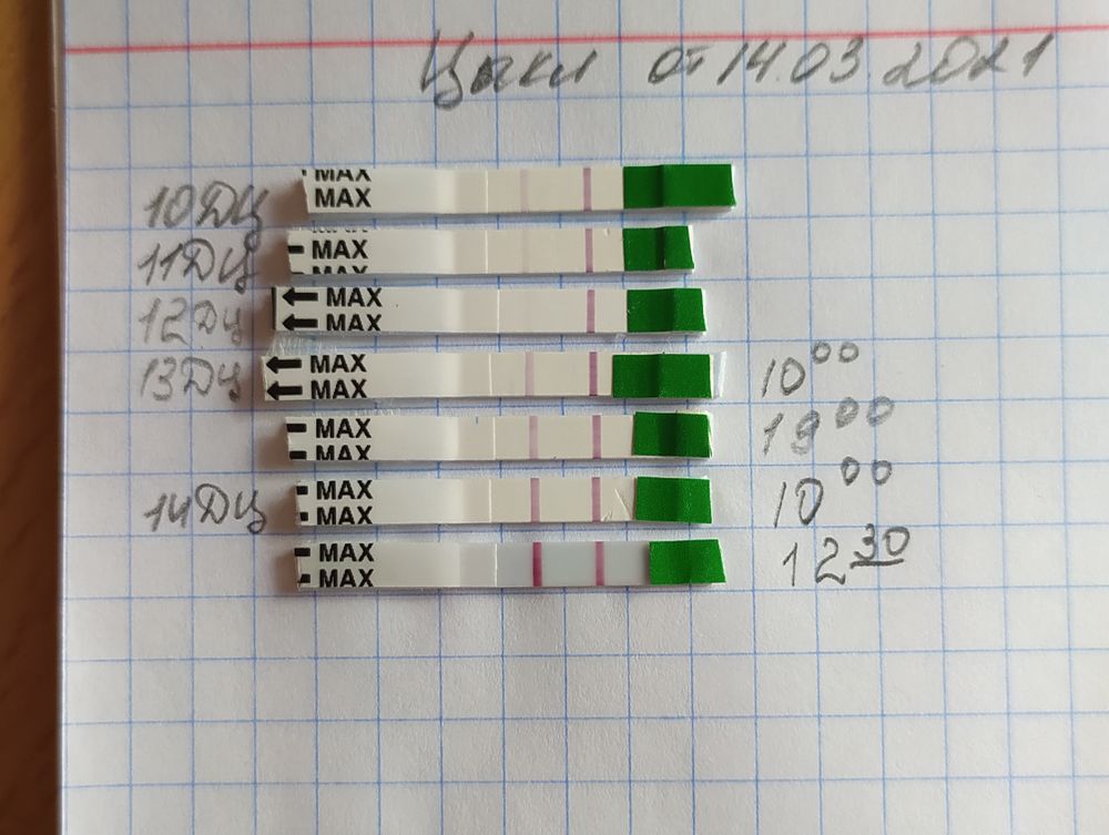 Малина , ЛГ всегда присутствует в организме, перед О резкое его повышение и положительный тест. В течении дня его уровень немного меняется, то меньше, то больше. Может вчера меньше воды выпили, а сегодня больше. У меня так до О могут несколько дней отличаться друг от друга интенсивностью полоски, а потом резко поярчал.
