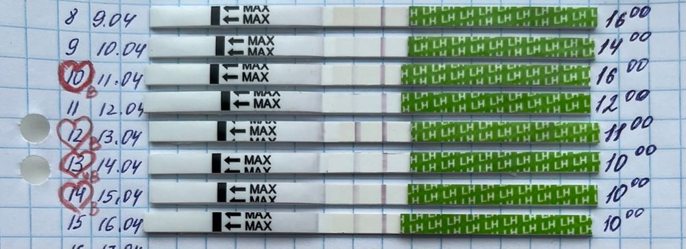 Овуляция( тесты на овуляцию)Здравствуйте. Ловлю овуляцию с помощью фраутест.Цикл 28-29дней.Начала с 10дц,с