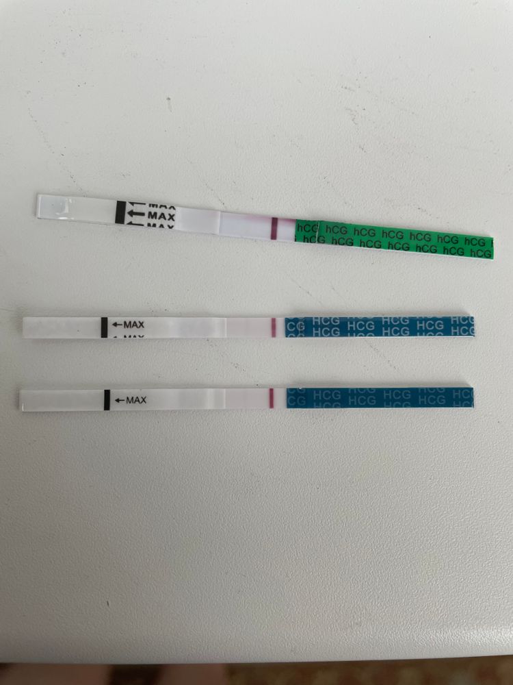 Верхний Q тест, посередине мама тест, нижний эви. Все розовые. Я в шоке!!!!!!!