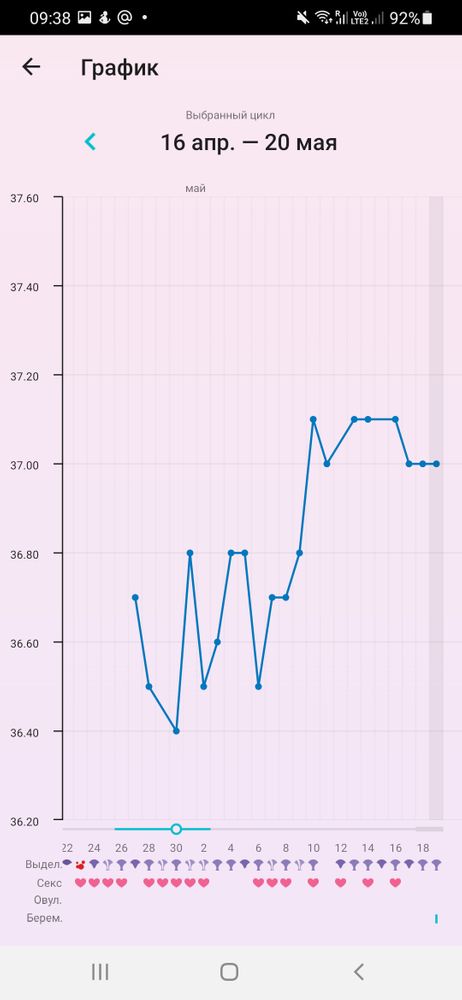 Что имею сейчас? Периодически тянет живот как на м, но не более минуты и не больно,грудь начала болеть только сбоку и всего 4 дня назад (обычно я мучаюсь сразу после о). Так же, ШМ поднялась в то же время и загнута к копчику! Никогда такого за собой не замечала. Выделения , которые были всегда кремовыми во второй фазе, стали кремо-слизистыми с небольшим количеством яб (светло желтоватого цвета, простите), мутит часто от всего. БТ не опускается ниже 37...