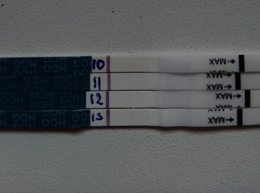 Алёнка, а как тогда это объяснить,на 12 дпо хгч <1,2 а на 13 такая же полоска как и на 10,11, беременности не было никакой, месячные в срок,реагенты