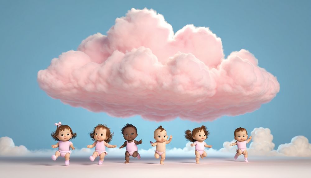 На розовом облаке младенчика ждал кто-то невидимый с крыльями. Невидимый с крыльями давал младенчику подписать бумаги: мол, выбрал родителей добровольно, без нажима со стороны сотрудников Канцелярии по выдаче земных родителей.
