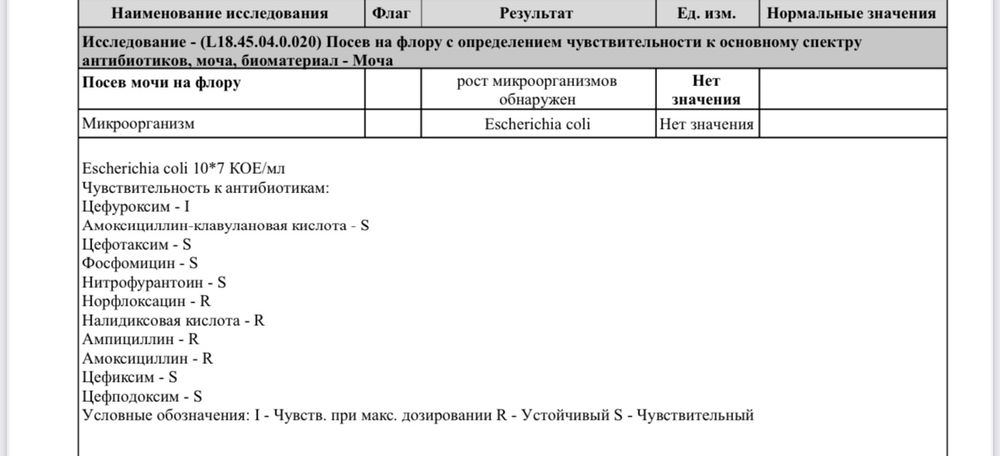 • Бакпосев мочи. Обнаружен рост микроорганизмов Escherichia coli