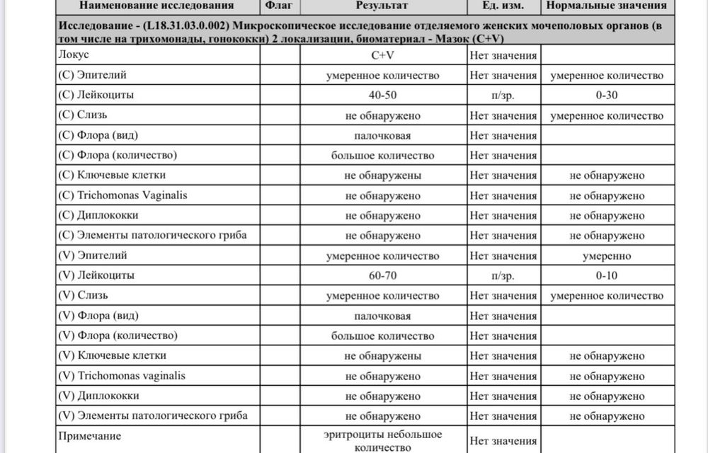 • Гинекологический мазок на флору. Повышены лейкоциты в 2х локализациях