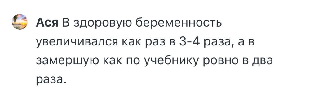 У меня как у Аси на скрине. В 2 здоровые беременности рос более, чем удвоение. А в 2 ЗБ (с разницей в 11 лет и одна анэмбриония, другая уже с сердцебиением+) - вот при них рос до определенной поры "удвоение как по учебнику" (до 40тыс в 1 ЗБ и до 15тыс во 2 ЗБ).