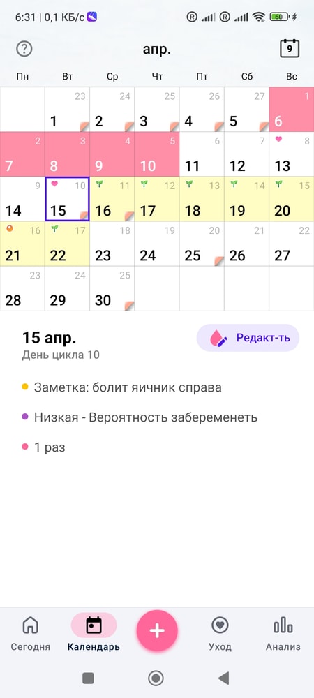 А сегодня должны уже заканчиваться месячные, но они ещё и не начинались, и никаких предвестников, как это обычно бывает. Думаю бежать за тестом однозначно не стоит, овуляция сместилась, вероятно, или случилась повторно ближе к концу цикла.