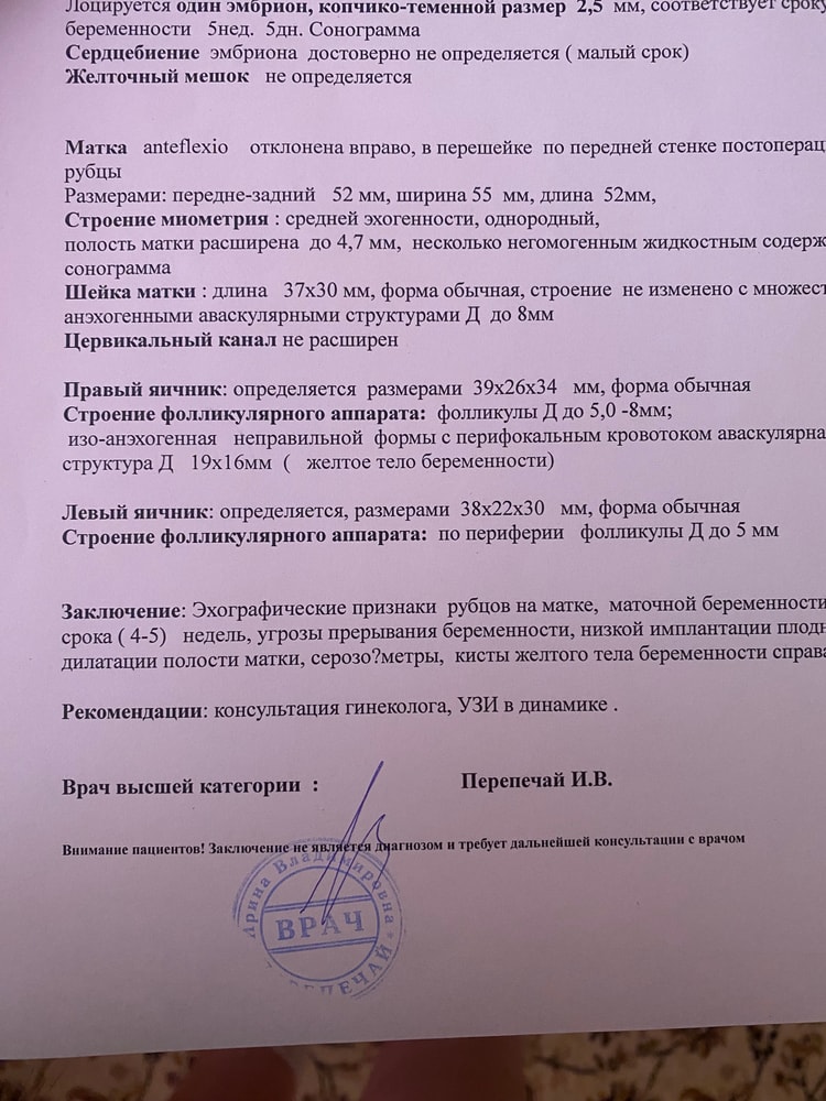 Эвелина Надолинская, у меня в феврале был выкидыш на 9 неделе. На данный момент 5 недель. Больше отдыхаю, не нервничаю и не думаю о плохом. На Узи пойду через 2 недели.