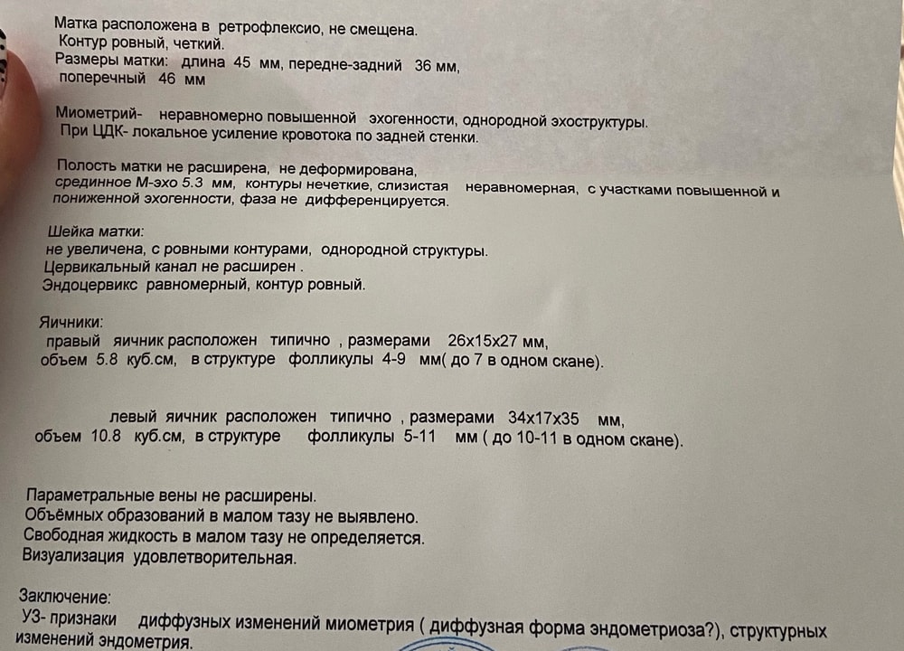 ˙˙·٠•●Е╞╣۞т●•٠·˙˙, мне в ноябре 2023 года хороший узист написала в заключении, что нельзя исключить наличие хронического эндометрита, а на днях уже другой врач сказал про аденомиоз (эндометриоз). Буду отталкиваться от узи на 9 день цикла