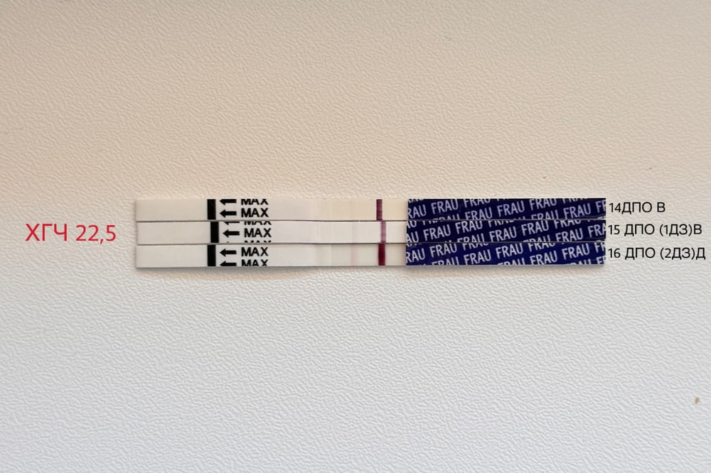 Решила, ну может реагенты или не получилось… и вот за 1 день до месячных делаю тест, а там видная слабая полоска снова 🤪 На 1ДЗ сдаю ХГЧ 22.5 🙈 понимаю, что мало, закрались мысли о ВБ 😬