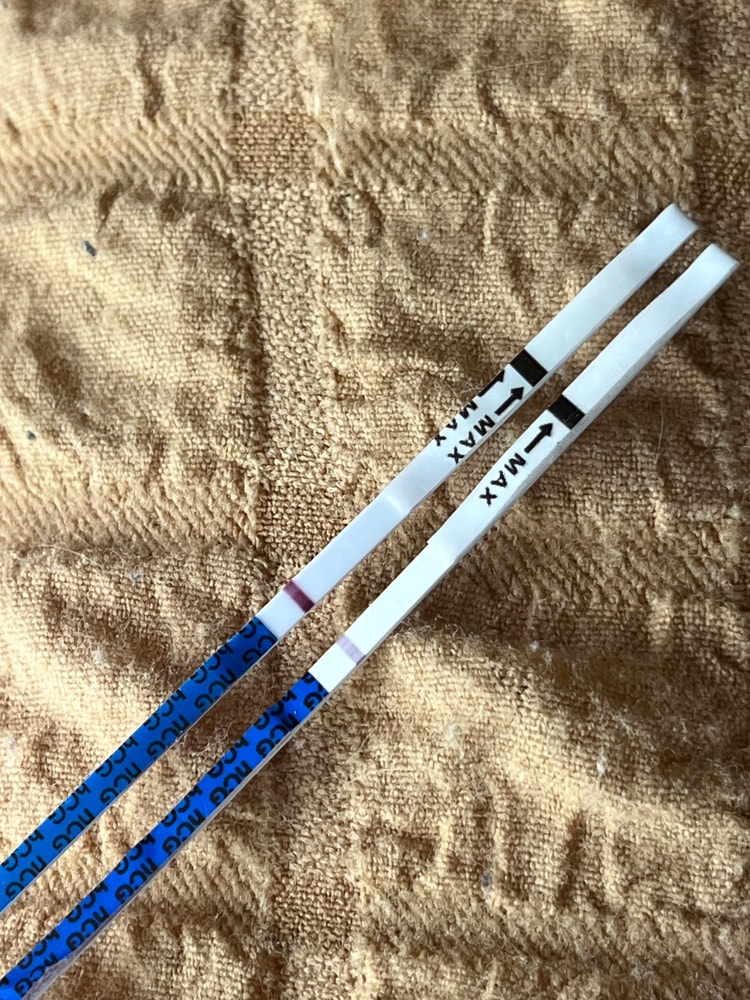 Ждем дня Х (Признаки беременности / Тесты)Всем привет! У меня 6 дпо, овуляция была во вторник. По ощущениям болит низ живота, как перед месячными. Вообще сам цикл не постоянный. Сегодня сделала тест верхний (сегодня) нижний (вчера) отчетливо вижу вторую бледную полоску, на фото возможно на так заметно. Делала тест clear blue, ничего не показывает , даже нет призрака. Опытные мамочки, если надежда , что все получилось)🫶🏻