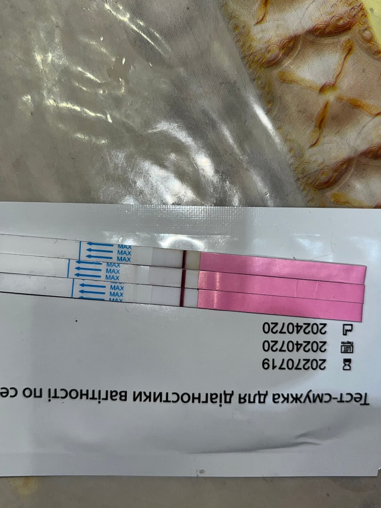 Мама_Кошка, ДПО не отслеживала,так как беременность не планировалась😁Если Бог даст,буду рада🙏Хоум тест. Утром выдал сразу розовую,даже не надо было ждать высыхания,остальные 2 теста уже сделала во второй половине дня🌸На фото хуже видно чем в жизни полосочки🙏Ну я не думаю же что прям все 3 дают реагент🙏🙏🙏