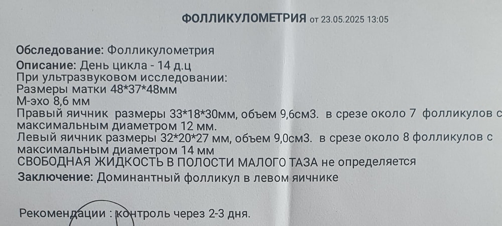 Овуляция( тесты на овуляцию)Сегодня утренний тест на О был довольно яркий, фемометр отметил пик, но подобную яркость я видела и 2 дня назад, потом спад. Возможно дело в том, что я тесты делаю как попало в разное время. В общем, решила сходить посмотреть как там дела с фолликулами. Честно скажу ожидала, что скажут сегодня будет овуляция или уже произошла. Но нет.. По размерам фолликулов до неё ещё пара дней минимум, а то и все три. Что думаете?