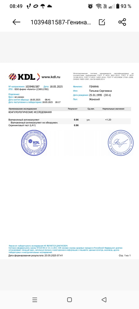 Татьяна , я сдала всё до беременности. Мужа тоже обследуем. По моим анализам во время беременности и сейчас все в норме. Клексан для перестраховки.