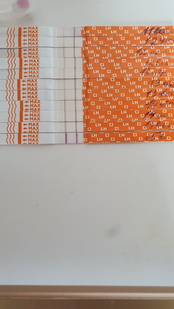 Овуляция( тесты на овуляцию)Сегодня полосочка выглядит немного ярче, фемометр опять ставит пик. Тесты на этом у меня закончились, теперь все прояснит узи послезавтра 🙏