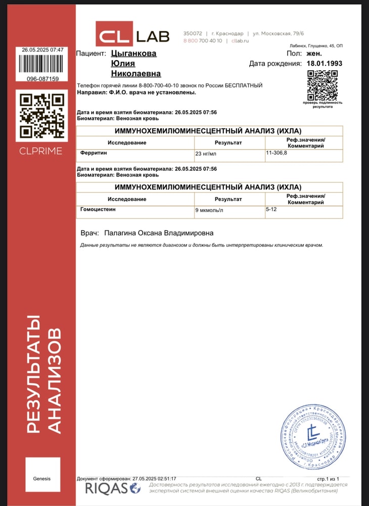 Здравствуйте, по референсному значению гомоцистеин у вас в пределах нормы