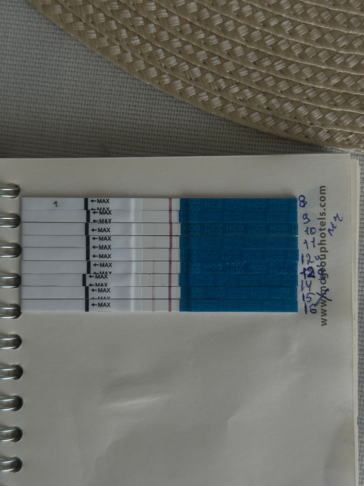 Предположительно день Х, но это не точно, тк овуляцию я не отслеживала, а тесты сделала интуитивно. К слову, мне тогда казалось, что полоска очень бледная, пара подруг сказали, что точно не беременна. Потом я сдавала ХГЧ и делала электронные тесты.